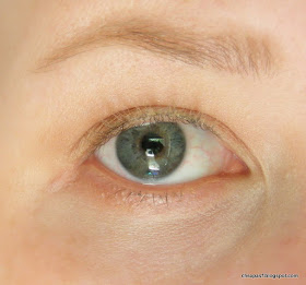 Usually I start to like mascaras a week or two after I've started using them, when the product has become just a little drier. They tend to become less messy and to add volume more easily. But I've had the opposite experience with this stuff. At first it was great - smooth, even length + volume - but now, a couple weeks later, it's starting to get globby and clumpy. You can see a glob stuck to the end of the brush in the photo above, and it's often worse than that. To get it to look really good, I should be combing through my lashes after applying it, but that's more work than I am willing to do on a regular basis. You can see below photos of both of my eyes taken on the same day. The first one is okay, but on the second, there are lots of blobs stuck to the ends of my lashes. Not great. It's pretty inconsistent.